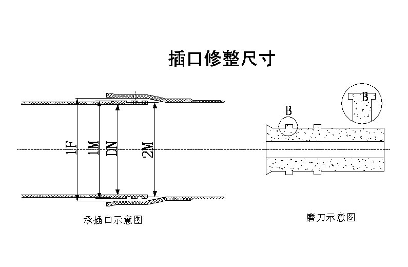 磨刀 (Φ130)凸輪 B特性 | 公稱(chēng)直徑 DN | 模具外徑 1F(不含薄膜) | 標(biāo)準(zhǔn)承插口直徑配合間隙(mm) | 插口外徑1M (不含石臘樹(shù)脂 ) | 插口溝槽外徑2M (不含石臘樹(shù)脂) | 承插口 直徑 配合間隙修整范圍 | 插口溝槽修整周長(zhǎng)( Q 為模具承口無(wú)薄膜時(shí)的實(shí)測(cè)周長(zhǎng)) | “ O”型密封圈內(nèi)徑 A | 密封圈截面直徑 B |